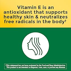 Antioxidant support supplement: contains one 180 count bottle of Nature Made 180 mg Vit E 400 IU Softgels for a 180-day supply This antioxidant Vitamin E supplement is the dl-Alpha form of Vitamin E, which supports healthy skin and healthy aging Sourced from high-quality ingredients, these Nature Made Vitamin E 400 IU softgels are gluten free and contain no color added, no artificial flavors and no added preservatives These Vitamin E softgels provide 180 mg (400 IU) of Vitamin E, which is an antioxidant that helps neutralize free radicals in the body and supports a healthy immune system Adults, take one Vitamin E softgel daily with water and a meal United States Pharmacopeia (USP) Verified, #1 Pharmacist Recommended Vitamin & Supplement Brand* These statements have not been evaluated by the Food and Drug Administration; this product is not intended to diagnose, treat, cure, or prevent any disease