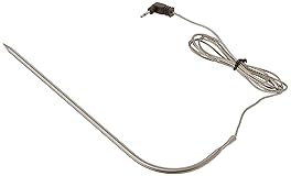 Digital, programmable thermometer; high-heat, stainless steel probe and cable Great for roasts, barbecue, candy-making, and deep-fat frying Check internal food temperatures without opening oven door; alarm sounds when food is done Runs off a single AAA battery (included) Measures temperatures from 32 to 482 degrees Fahrenheit (0 to 250 degrees Celsius)
