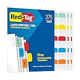 - These Redi-Tag laser printable index tabs offer an easy and convenient solution for organizing documents, folders, files and more, in school, office and professional settings. Permanent adhesive tabs are customizable and allow you to print labels from Redi-Tag's online templates. See packaging for details. The permanent adhesive on each durable plastic tab ensures that the tabs stay securely in place. You'll never have to wonder where your work is. With the ability to print clear, precise labels using a laser printer (inkjet not recommended), these tabs provide a polished and professional appearance that enhances organization and ease of locating specific pages and places. Laser printable tabs come in 5 assorted colors for easy color-coding of subject, information and more. Use laser tabs on more than just paper. Custom tabs work on books, planners and anywhere you need indexing and organization. You get 100 laser printable tabs in 5 assorted colors: red, yellow, blue, orange and green. Tab dimensions: 1.125 x 1.25 inches. 375 per pack.