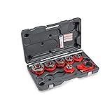 1/8" - 2" EXPOSED RATCHET PIPE THREADER SET: Makes threading pipe or conduit quick and effortless by utilizing individual die heads for each pipe size and a manually operated ratchet DUCTILE CAST IRON DIE HEADS: Pipe threading kit includes 1/2", 3/4", 1", 1-1/4", 1-1/2", and 2" sized die heads; each size fits in the ratchet without any additional pieces RUGGED CARRYING CASE: Lightweight yet rugged carrying case accommodates all dies heads in the set to keep them organized and together and features labeled compartments for clear identification ALL-IN-ONE PIPE THREADING KIT: Dependable, heavy-duty constructed tool set includes die heads, ratchet assembly, ratchet handle, alloy dies, and a coordinating carrying case for organized use on job sites RIDGID LEGACY: Purpose built for professionals in the evolving commercial, industrial, and energy markets who install and maintain the world's infrastructure