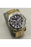Gold tone stainless steel case 48mm diameter x 12.5mm thick; Blue dial; Luminous hands and hour markers Japanese quartz movement, VD53 Caliber; Assembled in Japan; SR920SW battery included; Watch weight: 310 grams Gold tone stainless steel band, 215mm L x 26mm W; Band is adjustable by adding/removing links; Fold over safety clasp Flame Fusion crystal; Push/pull crown; Unidirectional stainless steel bezel with blue bezel ring; Functional Subdials: 60min, 60sec, 24 hour;200 meter water resistant: Suitable for professional marine activity and surface water sports. Suitable for diving.