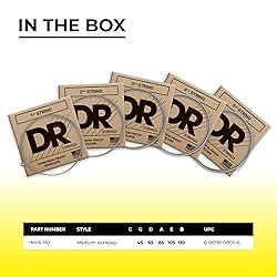 - Dry LO rider stainless steel round wound on hex core 5string bass medium 45-130.
