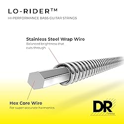 Lo-rider - stainless steel bass strings: 5-string Medium to heavy 45-130 For players who are into slapping, popping and tapping With a stainless-steel wrap wire on a hexagonal core, they deliver a combination of high end, depth and a bit of stiffness that makes harmonics very accurate Lo-rider strings provides more depth of tone and are a bit stiffer than hi-beams