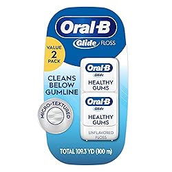 You will receive (2) pack(s) of Oral-B Glide Healthy Gums Unflavored Floss (50 meters each) Effectively removes tough plaque in hard-to-reach areas and just below the gum line Smooth texture slides easily between teeth for effective plaque removal Gently stimulates gums and helps prevent gingivitis as part of a complete dental plan Unflavored Oral-B, the #1 Dentist Recommended Floss Brand