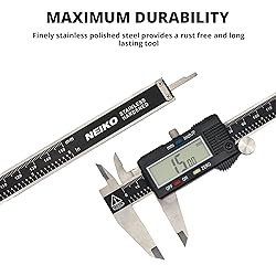 NEIKO 01407A Electronic Digital Caliper Measuring Tool, 0 - 6 Pulgadas Construcción en Acero Inoxidable de Gran Pantalla LCD Rápida Conversión de Botón para Fracciones en Pulgadas y Milímetros, Herramienta de Medición de Calibrador Digital