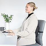 - The Luniform Lumbar Support cushion helps reduce lower back pain by providing essential support to the lumbar region of the spine. This support emulates the natural lumbar curve to help improve posture. Designed with precision cut foam, this ergonomic cushion makes an excellent addition to your favorite chair. The Luniform is ideal for use when sitting at a computer for extended periods, or long hours in a vehicle. The compact size is convenient for travel. An adjustable strap secures the cushion to almost any chair or seat back to help maintain placement. The cushion's fitted cover is constructed from a durable polyester/cotton fabric; available in black or blue. BAK413 Luniform Lumbar Support Cushion - Black