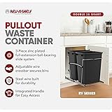 Rev-A-Shelf Double Pullout Trash Can for Kitchen Cabinets 35 Qt Garbage Recycling Bin on Full Extension Slides, Black