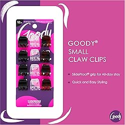 - Discover the secret to casual, polished locks with Goody Small Basic Half-Claw Clips. Featuring SlideProof grip, these 3-prong mini claw clips deliver a secure, all-day hold—no slipping, no tugging. With a neutral palette of black, tortoise, and clear finishes, this 12-pack seamlessly matches any look and works beautifully on all hair types. Whether you're crafting a quick half-up do, sectioning your hair for styling, or simply keeping strands in place on busy mornings—these lightweight, compact claw clips are your effortless go-to. From daily wear to travel, Goody ensures comfort, convenience, and confidence in every clip