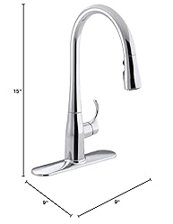 KOHLER 596-CP Simplice Kitchen Sink Faucets with Pull Down Sprayer, 3-Spray Design, Polished Chrome Kitchen Faucets, High Arch