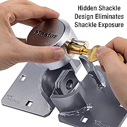 - The Master Lock Magnum Heavy Duty M736XKAD features a Hidden Shackle Padlock with 9-1/6in (23cm) High Security Hasp made of zinc plated solid steel for maximum strength, reliability and corrosion resistance. The hidden shackle design eliminates shackle exposure and protects against bolt cutter attacks. The 5-pin cylinder prevents picking. The Lifetime Guarantee provides peace of mind from a brand you know and can trust.