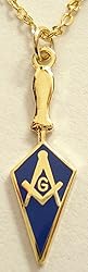 Trowel with Square & Compass Masonic Necklace - [Gold & Blue][1'' Tall]