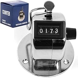 TALLY COUNTER – Use the Stalwart counter clicker for ticket takers at sporting events, as a golf counter, or to count attendance, baseball pitch count, or car parking tally. Track anything that requires counting with this tracker that tallies from 0-9999. SMART QUICK RESET KNOB – The four-digit display on this tally counter clicker features easy-to-read white numbers on a black background. Use the knob on the side of the hand counter to reset your count quickly and easily. STRONG CONSTRUCTION – The outer casing of the unit is constructed from sturdy metal. The durable thumb tally button makes an audible click when it is depressed, so it is easy to track and use accurately. SECURE MOUNTING – This people counter includes a finger ring for handheld use as well as a removable base with screw holes that can be used to securely fasten the unit to a table or countertop. Mounting hardware is not included. PRODUCT DETAILS: Materials: Metal and Plastic. Dimensions: (L) 2.25” x (W) 2.375” x (H) 2.125”. Includes Click Counter Handheld Clicker with Removable Mountable Base. Mounting Hardware Not Included. Color: Silver and Black.
