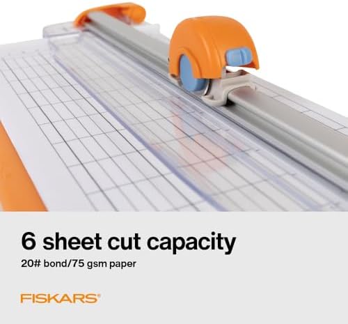 - SEWING, ARTS, AND CRAFTS STAPLE: Fiskars Rotary Paper Trimmer features a 28mm rotary blade for quick, straight cuts through up to 6 sheets / 3mm thickness