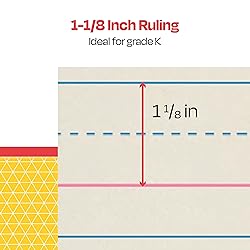 Writing Paper for Young Learners: 500 sheets of Zaner-Bloser lined paper for handwriting practice. Zaner-Bloser Line Guides: Red baseline, dotted midline, and top line guide proper letter placement. Sized for Grade K Skills: 1-1/8 inch ruling supports kindergarten levels; other rulings available. Margin-Free Design: No margins and ruled long way for more space; other formats also offered. Part of a Complete Line of School Supplies: Explore more handwriting paper and classroom essentials.