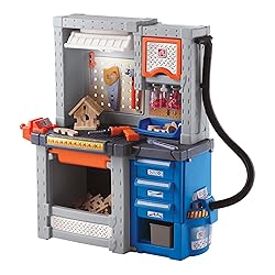 TODDLER WORKBENCH: The Step2 Deluxe Toy Tool Bench is the ultimate toy tool workshop for a child’s playroom. Kiddos will make believe they're a carpenter as they use their toy tool set to build the ultimate project. Dimensions: 40.75" H x 34" W x 15" D. LARGE WORKSHOP: Children can pretend to build and fix projects using their toy tools. This girls and boys tool bench workshop has space for multi-child play. The tool bench for kids work surface includes screw holes, recesses for nuts, and screw storage. INTERACTIVE FEATURES: The toddler tool bench provides interactive fun, a shop vacuum that teaches the importance of clean-up. The tool bench features an electronic drill and overhead shop light. SKILL-BUILDING FUN: Provide hours of fun for kids with this play tool bench. The Durafoam blocks let little ones create their very own designs. The kids playset helps kids develop motor skills, role-playing, language & social skills, & critical thinking. EASY STORAGE: When playtime is over, use the tool chest cabinet, sliding drawer, parts bin, and hanging jars to help store the 50 included play tools accessories to keep this kids tool set neat. Plus, it’s low maintenance – just wipe down as needed. IN THE BOX: Kids work bench; 50-piece accessories play tool set