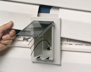 For added convenience, covers are removable for electrical installation. Replace cover upon completion. Bug Plugs ship installed to seal unused cord hole openings Outer flange covers cut ends of siding Includes box with cover, bug plugs, (1) standard duplex and (1) GFCI face plate, installation screws, and NM cable connector One-piece assembly replaces the installation of an electrical box and bubble cover assembly