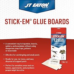 VERSATILE PEST CONTROL: Designed for trapping mice and insects, effective for both indoor and outdoor use NO-MESS FORMULA: Features non-drying, non-flowing glue for easy disposal and hassle-free cleanup NON-POISONOUS: Provides a safe, non-toxic solution for use around non-target animals and sensitive areas BULK PACK: Includes 12 white glue traps, perfect for managing larger infestations or multiple placements LEGACY OF TRUST: Since 1932, JT Eaton has pioneered pest control solutions, from paraffin bait blocks to glue boards, and continues to lead with innovative products for professionals and retailers