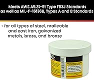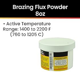 For all types of steel, malleable and cast iron, galvanized metals, brass, and bronze This flux is used for flame brazing with either an oxy-acetylene or electric carbon arc torch Active Temperature Range: 1400 to 2200 F (760 to 1205 C) Meets AWS A5.31-91 Type FB3J Standards as well as MIL-F-16136B, Types A and B Standards Brazing Flux Powder comes in 8-Ounce container, Made in the USA