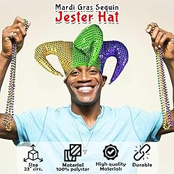 VIBRANT MARDI GRAS STYLE: Embrace the festive spirit with this eye-catching mardi gras hat. Perfect for adding flair to your mardi gras attire for women and men CLASSIC JESTER APPEAL: Elevate your costume with this dazzling sequin mardi gras jester hat. Its vibrant red and black design captures the essence of tradition VERSATILE & FUN ACCESSORY: Be the center of attention! This joker costume hat is a standout piece perfect for themed events and adding flair to any outfit ADULT-SIZED COMFORT: Designed for comfort and style this jester hat for adults ensures a comfortable fit while completing your jester costume ensemble WHIMSICAL MARDI GRAS ADDITION: Make a statement! This bold and lively sequin jester hat is the perfect accessory for adding a touch of fun to your festivities