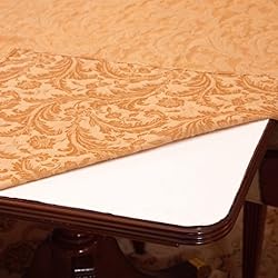 EXTEND THE LIFE OF YOUR FURNITURE - Our Deluxe Cushioned Heavy Duty Table Pad will help prevent any damage from happening to your table. Our thick high quality table pad prevents any liquid or low heat damage. You will be able to preserve the quality of your table for years keeping it looking like new. You can relax and have peace of mind knowing that any accidents that happen will not damage your table. VERSATILE- Can be used as primary tablecloth or under your favorite tablecloth for a beautiful gentle, flowing drape on any type of table, even card tables for an elegant party look. This table pad can be cut to perfectly fit any size table or irregular shaped tables. For use outdoors and indoors. HEAVYWEIGHT PROTECTION – Protects Your Table From Spills, Chips, & Scratches. Accidents happen especially if you have young kids. Our table cloth provides the protection you need from coffee spills , messy children and scratches from dinnerware. For use on desks, patio tables, dining tables, side tables, coffee tables, of any material. The vinyl surface provides easy clean waterproof protection to your table. The flannel back provides a soft contact with your table. EASY CARE INSTRUCTIONS – Wipe Clean With A Damp Cloth ***NOT MACHINE WASHABLE – DO NOT IRON*** The vinyl surface makes it easy to wipe clean. The surface makes this table pad water proof / liquid proof. MATERIALS – Surface is 100% Vinyl With 100% Polyester Flannel Backing Table pad features an extra-thick polyester resilient scratch less layer between hot dishes and the table. Our sturdy table pad will last years and be able to withstand any spills.
