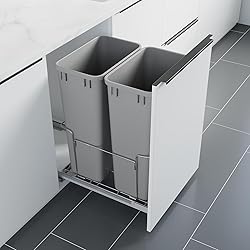 KITCHEN TRANSFORMATION: Transform your kitchen with this trash can cabinet, designed to make waste management a breeze. As a garbage can cabinet, it allows for easy separation of recyclables and non-recyclables, making your contribution to environmental sustainability effortless. DURABLE & ECO-FRIENDLY MATERIAL: The base of under cabinet trash can is made of a high-quality steel panel and the trash bin comes with eco-friendly plastic, the chrome-plated surface is strong and durable, and the load-bearing capacity is strong enough for your use. ADJUSTABLE FIT: The trash can cabinet comes with adjustable door-mount brackets, ensuring a perfect fit into your cabinet. This pull-out trash can system mounts to the cabinet floor, providing a clean, integrated look. INSTALL IN MINUTES: This pull-out trash bin can be easily mounted to the base cabinets. The door-mounted brackets offer you a one-step opening process after installing the cabinet door. The bin can be assembled within a few minutes. SPACE-SAVING: Designed with precision, the 50Qt garbage cans for kitchen fits perfectly under your kitchen cabinets without consuming unnecessary space.