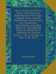 Three Score and Eleven: Being Addresses and Miscellaneous Writings, Clipped from Various Publications and Printed for Gratuitous Distribution Amongst ... Favors, with a Preface by Hon. D. M. De W