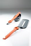 - This integrated, 11-piece set neatly stores in a soft-sided, zippered case, ideal for cooking larger meals on the trail. A perfect set to use with our full-size cooksets. The entire set weighs in at just over a pound and stows in an exquisitely organized case. Includes a collapsible whisk, pivot spoon, pivot spatula, spice shaker, two condiment containers, cutting board, scrubber, scraper, camp towel, and a ballistic nylon case.
