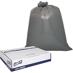 - Maximum-strength Trash Can Liners are made with puncture-resistant resins so they are ideal for heavy and extra-heavy trash applications including heavy food, office waste, boxes, cans and construction debris. Extra-strong liners are puncture-resistant to sharp objects. Star-bottom, low-density construction easily conforms to any size trash can and spreads trash around the bottom of the bag. The star seal, or X-seal, is designed for more even distribution of contents. Bags come in a convenient coreless roll for compact storage and easy dispensing anywhere. Rolls are perforated for easy access. Gray plastic resin conceals contents so, even if your janitorial crew collects garbage during regular work hours, you and your guests will not have to look at unsightly garbage. Each 1.55 mil thick bag holds up to 55 gallons. Bag size is 39" x 56".
