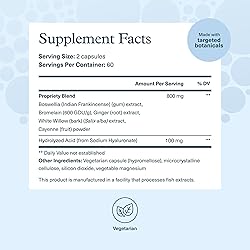 Skin & Joint Care: Youtheory Hyaluronic Acid Advanced supports skin and joint health to help you look and feel youthful* Hyaluronic Acid Supplement: This joint support supplement contains hyaluronic acid to support internal joint lubrication and cushioning* Skin Supplement: Our skin health supplement also contains Boswellia Extract for further support* Dairy-Free Supplement: Our quality dietary supplement is dairy-free, soy-free, and gluten-free, making it accessible to many dietary restrictions The Youtheory Promise: Everything we do is based on a dedication to build pure and effective supplements to support our mission to inspire wellness in all