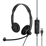 EPOS Sennheiser Consumer Audio SC 60 USB ML (504547) - Auriculares de Negocio de Doble Cara | Para Skype for Business | con Sonido HD, Micrófono con Cancelación de Ruido y Conector USB (Negro)
