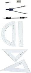 This 8 Piece Math Tool Set has a plastic construction. The kit includes the following items: Compass, Graphite Refills, Transparent Protractor, Transparent Ruler, Transparent 60 degree; Triangle, Transparent 30 degree; Triangle, Technical Pen, Eraser Complete for all your math needs. Perfect for use in the home or classroom. Transparent 60 Degree triangle