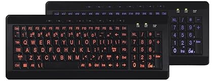 Large Font Keys reduce Eyestrain and improve Peripheral vision to increase productivity and ease Anti-static, anti-electromagnetic interference with Smooth soft keys Whole silica gel" cushioned keys. This energy saving keyboard has a non-glare LED lighted board with a USB interface. Great for easy access to multi-media applications 2 Changeable LED Colors - Orange & Blue One-touch internet access, easy to browse the Web ,Wired Standard Power USB 2.0