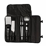 - Cooking in the outdoors is easier when you have the right tools. The 5 piece all-purpose chef’s set keeps the most commonly used utensils organized and ready to go all in a convenient carry case. Great for camp, RV, tailgating, and home. 7" Spatula with beveled edges for cutting and easy flipping 7" hardened stainless-steel santoku knife Heavy-duty tongs give better control of food while cooking Flat nosed spoon excellent for dishing up meals, great for Dutch ovens Durable carry case easily packs with you Utensils made of stainless-steel and feature ergonomic handles CAMP CHEF: for over 25 years Camp Chef has been making quality cooking gear for all of your outdoor cooking needs. Our products include Outdoor Cookers, Pellet Grills, Smokers, Pizza Ovens, Cast Iron Cookware, Flat Top Grills, Griddles, Fire Pits, Outdoor Movie Screens, Emergency Stoves and all the camping accessories to make your cooking easy and fun.