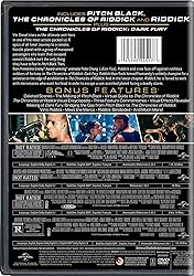 - Vin Diesel stars as the ultimate anti-hero in one of the most action-packed sci-fi epics of all time! Journey to a remote, hostile planet with a group of marooned passengers who learn that escaped convict Riddick isn't the only thing they have to fear in Pitch Black. Then, from Emmy Award winning animator Peter Chung (Æon Flux), Riddick and crew face off against ruthless soldiers of fortune in The Chronicles of Riddick: Dark Fury. Riddick then finds himself humanity's unlikely champion for a universe on the edge of annihilation in The Chronicles of Riddick. And in the latest chapter, Riddick, he is forced to work with mercenaries who want his head in order to escape a sun-scorched planet facing a deadly storm. Bonus Content: Disc 1 - Pitch Black: The Johns Chase Log Feature Commentary with Vin Diesel, Cole Hauser and Director David Twohy Feature Commentary with Director David Twohy, Producer Tom Engleman and Visual Effects Supervisor Peter Chiang The Making of Pitch Black Dark Fury: Advancing the Arc The Chronicles of Riddick Visual Encyclopedia A View Into the Dark Deleted Scenes Disc 1 - The Chronicles of Riddick: Dark Fury: From Pitch Black to The Chronicles of Riddick: Bridging the Gap Peter Chung - The Mind of an Animator Into the Light Disc 2 - The Chronicles of Riddick: Deleted Scenes Virtual Guide to The Chronicles of Riddick Toomb's Chase Log Riddick Insider Visual Effects Revealed Vin Diesel's Guided Tour Interactive 360° View of the Sets Audio Commentary with Writer/Director David Twohy and Actors Karl Urban & Alex Davalos Disc 3 - Riddick: Vin's Riddick Meet the Mercs Riddick: Blindsided