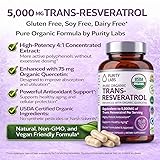 Purity Labs Trans-Resveratrol Supplement 5,000 mg Equivalent per Serving with Quercetin, USDA Organic High Potency Antioxidant, Vegan Capsules, 90 Count