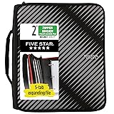 Five Star Zipper Binder, 2 Inch 3-Ring Binder with Round Rings, 5-Tab Expanding File, 380 Sheet Capacity, Black (72536)