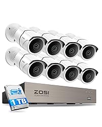 【H.265+ 8CH 3K Lite HD-TVI DVR】With the advanced H. 265 technology, which could double the data compression ratio, keep the high quality video even with low bit-rate, it allows you to maximize storage space and enjoy ultra-long recording. 【IP66 Weatherproof Metal Cameras with Audio & Night Vision】With built-in microphone in the camera It can support a one-way audio, you can hear the other party talking, but not the conversation.This camera use aluminum metal materials, it can be installed in almost any outdoor or indoor place. Up to 120ft night vision, let you see clearly day and night. 【AI Human/Vehicle Detection】Experience peace of mind with our AI-powered detection system that accurately identifies and alerts you to any person or vehicle. Stay connected through ZOSI Smart app for live viewing and playback on your smart devices from anywhere, anytime 【Privacy Protection & Instant alerts】When the security camera detects a human movement event, you will receive instant push notification and email alert. You can customize specific motion detection areas in each camera to minimize false alarms. 【Built in 1TB Security Hard Drive】Support ultra-long continuous recording and backup by USB. This DVR system can be set to automatically overwrite the oldest internally stored footage or you can transfer those video files by USB to a memory stick or external hard drive.