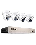 - ZOSI 3K Lite 8CH H.265+ Home Security Camera System with AI Human/Vehicle Detection,Night Vision,5MP Lite 8 Channel CCTV DVR,4pcs 1080P 1920TVL 2MP Outdoor Indoor Surveillance Dome Cameras (No HDD)