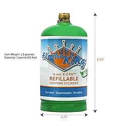 - Flame King Refillable 1LB Empty Propane Cylinder Tank - Reusable - Safe and Legal Refill Option - DOT Compliant - 16.4 oz, Green