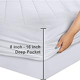 100% Polyester Mattress Pad: Our Queen size microfiber mattress pad measures 60 by 80 inches and fits mattresses up to 16 inches deep. Durable: The mattress pad keeps your mattress clean and comfortable. It is not liquid proof, so for spill protection, a separate waterproof cover is recommended. Soft and Comfortable: The super soft quilt with fiberfill has additional loft that provides extra comfortable sleep and protection; the elastic all around secures the pad into position An Ideal Choice: This mattress pad is a perfect choice if you're considering a comfortable, breathable and soft mattress pad Care Instructions: The cover is machine washable and you can tumble dry no heat; do not use bleach; easy maintenance; dry normal
