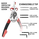 2-in-1 Reversible Design – Easily switch between internal and external snap ring applications with the flip of a switch—no tools or disassembly required. Wide Application Range – Works on internal retaining rings from 3/8" to 2" and external circlips from 1/4" to 2", making it ideal for automotive and machinery tasks. Quick, Tool-Free Tip Changes – Swap tips effortlessly by unlocking the switch; install new tips in seconds for fast job transitions. Includes 4 Tip Sets – Comes with four chrome vanadium tip pairs: 1.2mm and 1.8mm in both straight and 90° bend configurations to fit various circlip hole sizes. Spring-Loaded Handles – Designed for ease of use and added control, helping to hold circlips securely during installation or removal.