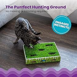 Outdoor-Inspired Cat Hunting Game: This hunting box brings the outdoors inside for your cat; Three jingle balls inside help satisfy your cat’s natural hunting instincts and promote active play Paw-Sized Openings for Exploration: Multiple paw-sized openings for swiping and swatting at the balls inside; Engages your cat in mental stimulation while they practice their natural hunting and foraging skills Comfy Lounge Spot for Cats: The faux grass top doubles as a comfortable lounge spot for cat naps after an exciting hunt; Fun for indoor cats who love to rest between play sessions Encourages Mental Stimulation & Exercise: Mental stimulation and physical activity are promoted through swatting, batting, and chasing; Keeps your cat engaged and entertained for longer play sessions One or More Cats Can Play: Multiple players can hunt at once; Provides ample opportunity for interactive play, boredom reduction, and team play with multiple cats or kittens