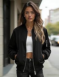 Material: The cute bomber jacket is made of lightweight fabric. It is a versatile jacket that is perfect for spring and autumn Features: Women bomber jacket, flight jacket, long sleeve casual coat, zip up fashion coat, going out jacket with pockets. The light jacket can show your own style Match: This classic bomber jacket is perfect for a casual look with a basic tee and jeans. Suitable for matching clothes all year round Occasion: Casual jackets are suitable for daily life, work or school, shopping and parties. A short coat that goes well with any top and trousers Note: Size runs small, we suggest order one size up and try the oversized style