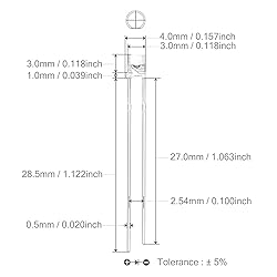 - Specification:Clear Flat HeadQuantity: 100 pieces / PacksLens: 3mm Diameter / Transparent / FlatEmitting Colour: 6000K-9000KLuminous Intensity: 800-1000mcdViewing Angle: 30 DegreeForward Voltage / Current: 3V-3.2V | 20mAWattage: 0.06WLead Length: 27mm / 28.5mmPolarity: 1 Cathode (Longer Part) | 2 Anode (Shorter Part)Used For: DIY PCB Circuit, Arduino, Raspberry Pi, Hobby, Science Experiments, Throwies Project, Breadboard, T1 T-1 Bulb, Bulk Parts ReplacementSearch "chanzon led diode" for more related leds.