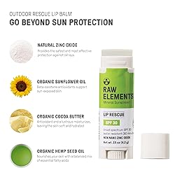 Raw Elements Organic Outdoor Sunscreen Lip Balm Rescue - SPF 30, UVA-UVB Protection, Reef-Safe, Non-Nano Zinc, Water Resistant, 0.15 oz (Pack of 1)