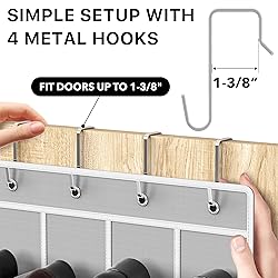 Maximize Storage with 24 Clear Pockets: Overall size 19" W x 64" H Pocket sizes: 4.3" W x 9.5" H, extra 2 inches on the top row for your larger shoe Easy Over-the-Door Installation: Hassle-free setup, hang and use instantly Includes 4 Durable Metal Hooks: Fits standard doors up to 1-3/8" in thickness; 4-point hanging design provides strong and balanced support Sturdy Fabric Base with Clear Pockets: Offers full visibility to everything at all times and is built to last 40 lbs Capacity & Wide Shoe Fit: Holds up to 40 pounds; suitable for slim shoes, small-size sneakers, flats, sandals, and heels Versatile Storage Beyond Shoes: Perfect for clothes, diapers, dry goods, pantry items or household essentials