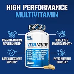 High Performance Formula - We believe mens multivitamins should have more than just a few basic ingredients which is why we added a wide range of superfood extracts and potent energy vitamins for men Achieve More - Reach your goals faster with our proprietary multi vitamin for men designed to support active men and enhance Bone strength Energy Immunity Eye care Skin health and Muscle support Full Spectrum Complex - Our unique mens multivitamin with Lycopene boasts an impressive blend of over 50 active ingredients including B complex vitamins Digestive enzymes Superfruit extracts and Immunity vitamins Built Smarter - Unlike many other multi vitamins supplements for men VitaMode is vegetarian and gluten free while using BioPerine and carefully chosen vitamins and minerals for maximum absorption Why EVL - EVL is a leading name in mens health supplements including mens daily multivitamins because we take our quality seriously and only use lab tested premium ingredients