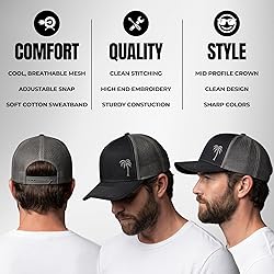 LINDO Trucker Hat [ Palm Tree Design ] for Men and Women: Mid Profile Cap with Breathable Mesh Back and Adjustable Snap