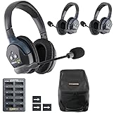 INCLUDES: 1 ULDM Dual-Ear Main Headset, 2 ULDR Dual-Ear Remote Headsets, 3 Rechargeable Lithium Batteries, 10 Bay Multi-port Charger and a Softside Carrying Case. HANDS-FREE FULL DUPLEX: Wireless headsets operate on 1.9 GHz frequency to avoid interference with other devices; allows for simultaneous communication for 3 users. System expandable for up to 5 users. EXCEPTIONAL PERFORMANCE: Up to 1,000 ft LOS wireless range; up to 6 hours of talk time on a single charge; pivoting microphone allows for the headsets to be worn on either left or right side. GREAT CLARITY: Noise-cancelling microphone that automatically mutes when pivoted upwards; high-quality voice communication even in high-noise environments. PERFECT FOR: video production, stage production, boat operators, drone operators, construction sites, RVs, UTVs and more!