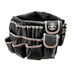 - Conveniently carry an assortment of tools with this Tradesman Pro Organizer that fits over a standard five-gallon bucket. Features 45 pockets and chain tape thong. 10 interior pockets include a power tool/cord sleeve; 35 exterior pockets offer handy access to frequently used tools and consumables. Two closeable pockets cover and protect tools and equipment. For more than 160 years, Klein Tools has manufactured premium-quality, professional-grade hand tools that deliver the performance, durability and precision needed to get the job done right. Our family of engineers, workers and craftsman continue to put six generations of expertise into every tool we create by using only the highest quality materials, superior workmanship, and keeping manufacturing as close to home as we can. Klein isn't just the name of our company, it's also our family name. And since we're an American company that's family-owned and family-run, you know you can count on us to be here tomorrow. Klein Tools doesn't just make great products, we make great products that stand up to the demands of the professionals who use them every day ... Since 1857.